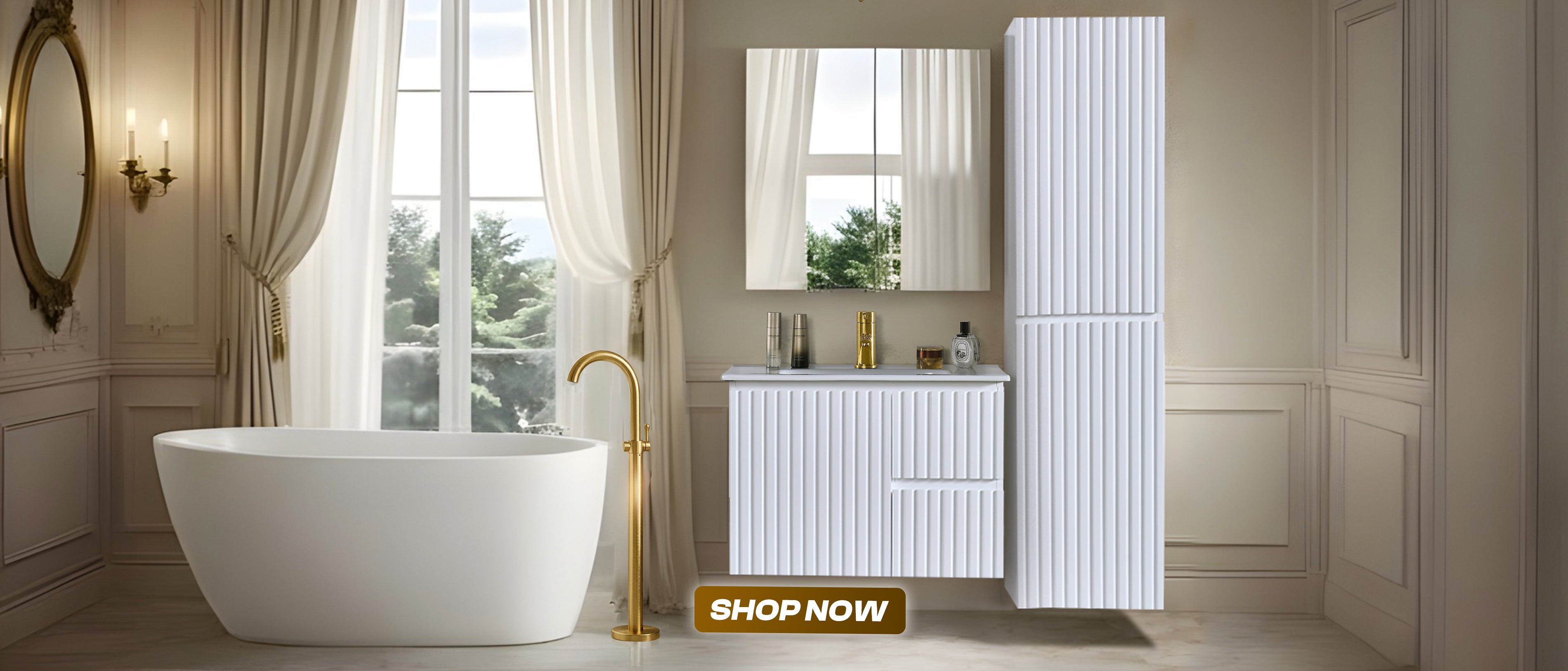 Baiachi Ivana Fluted 400mm PVC Water Proof Bathroom Tallboy CabinetFrom