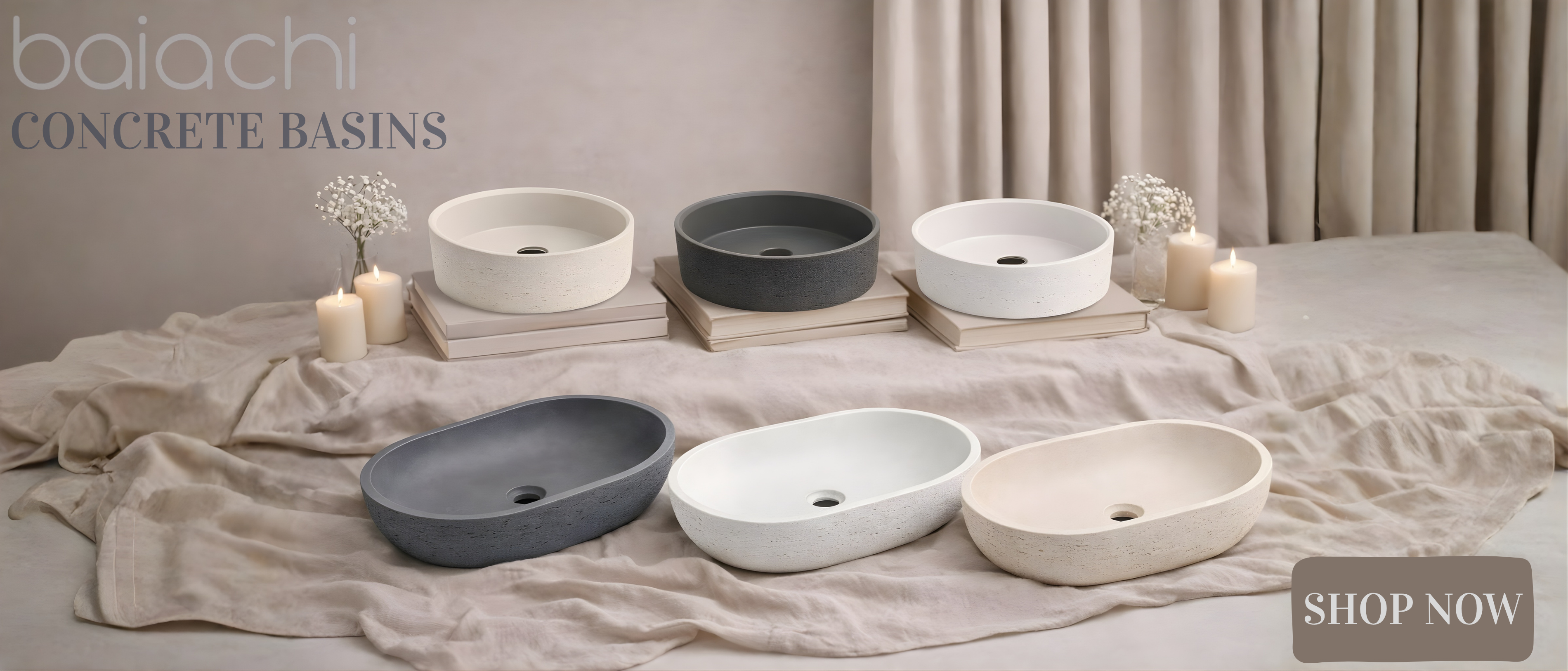 Baiachi Travertine Concrete Bathroom Counter top Basin Tuscany Warm WhiteFrom